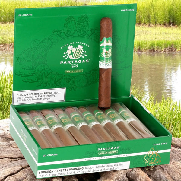 Indulge in the exquisite Partagas Valle Verde Robusto 5" * 50 cigar. Its medium-bodied profile boasts a perfect balance of sweetness, black pepper, and spice with hints of earth and cocoa. The Mexican San Andres wrapper, grown in the lush Valle Verde region, adds a touch of refinement to this handcrafted cigar. Made in Honduras for a deep complexity and smoothness that will ignite your senses.