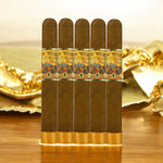 A flavorful medium bodied smoke with notes of spice, earth and coffee. This Nicaraguan puro features a golden-hued Sun-grown Habano wrapper. Handmade in Nicaragua, the New World Dorado Robusto's wrapper, binder and some of the filler tobaccos were grown in AJ Fernandez’s Dorado farm, which is known for its gold toned land and rich fertile soil.