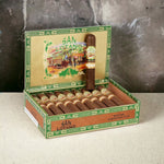 This is a flavorful full-bodied cigar that offers spicy and coffee notes. Its Brazilian Habano wrapper covers a Nicaraguan binder and a filler from Honduras, Nicaragua and the Dominican Republic. This exquisite blend was created by AJ Fernandez, a third generation Cuban cigar crafter who resurrected his grandfather’s brand. The San Lotano Requiem Habano Robusto is handmade in Nicaragua.