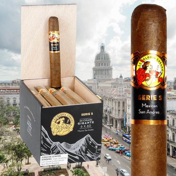 A medium-bodied cigar with notes of earth, spice, and tobacco sweetness. Its delicious, Mexican San Andres Colorado maduro wrapper covers a Nicaraguan binder and a Dominican and Nicaraguan filler. Handmade in the Dominican Republic, the La Gloria Cubana Serie S Robusto Gigante expertly combines cigar-crafting with a savory blend to create a memorable cigar. The cigar pairs well with espresso or single malt whisky.