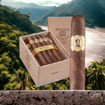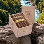 A bold and flavorful smoke with spicy and earthy notes. Its warm brown Ecuadorian Sumatra-seed wrapper covers a Connecticut broadleaf binder and a Honduran and Nicaraguan filler. This wallet-friendly stick was crafted by Estelo Padron (Jose O. Padron’s brother),and it is perfect for smoking at the golf course or at a weekend barbeque. The Bolivar Cofradia Churchill is handmade at the Honduras American Tobacos factory in Honduras.