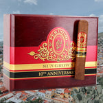 This medium to full-bodied cigar has a deep earthy profile accented with notes of spice and sweetness, and a nutty and woody finish. Its Nicaraguan Sun-grown wrapper cloaks a Nicaraguan Cuban-seed binder and filler. The wrapper has been aged for six years and then bourbon barrel-aged for an additional 10 months before it is paired with a six-year-old binder and filler. These carefully aged tobaccos join to create flavorful smoking experience. Handmade in Nicaragua, the Perdomo Reserve 10th Anniversary Sun Grown was crafted to celebrate Perdomo Cigar’s first ten years of crafting fine cigars.