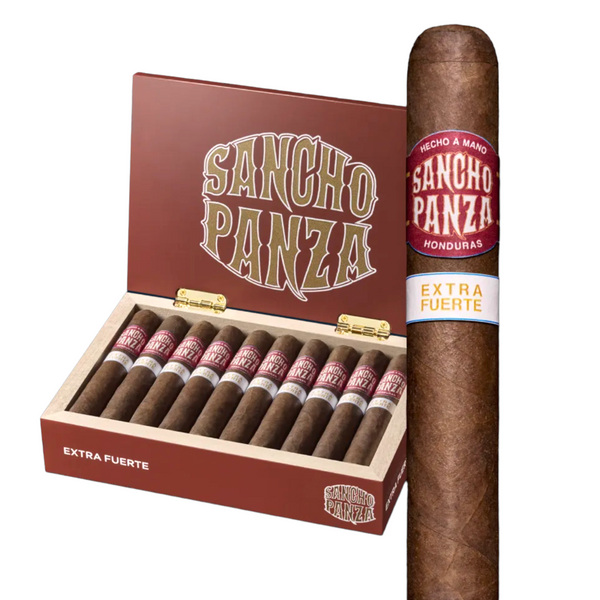 A potent and flavorful cigar with notes of coffee, earth and spice. Its Ecuadorian Sumatra-seed Colorado maduro wrapper covers a Connecticut Broadleaf binder and a Dominican and Nicaraguan filler. Handmade in Danli, Honduras, the Sancho Panza Extra Fuerte Toro is a reengineered version of this historic brand. The blend was developed by Matt Booth (of Room 101 cigars) who is the creative director for General Cigar Co.