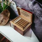 The flavor is medium to full in body and begins with a burst of black pepper, a feisty opening that's tamed by a rich yet smooth core of tobacco flavors and underlying creaminess that's present right on through to the cigar's conclusion. Its hearty bouquet is coupled with toasty, woodsy notes and a long-lasting, peppery aftertaste. Fans of unique and 'boutique' blends, I urge you to take me up on this one. As you know, we've got a generous return policy - so you've got nothing to lose and a whole lot to gain.