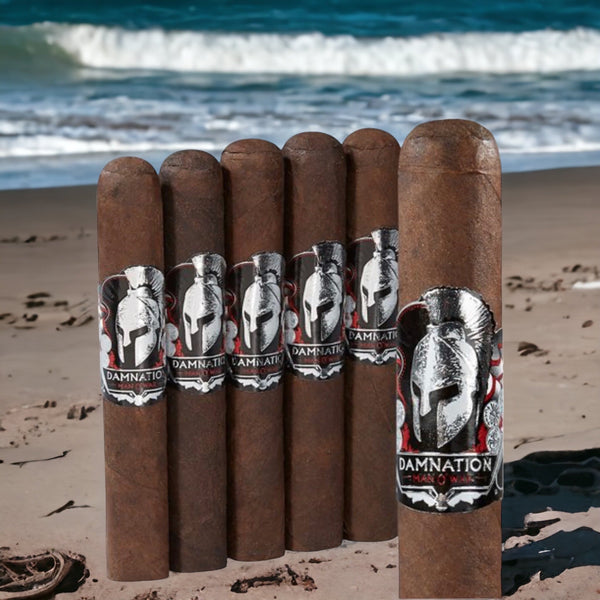 マン・オ・ウォー・ダムネーションは、そのモットーを体現する葉巻です。オイルを含んだコネチカット・ブロードリーフのラッパーに、燃えるように香るニカラグア産ロングフィラーがたっぷりと詰め込まれています。ダムネーション葉巻は、オーク、レザー、苦いエスプレッソ、そしてとてつもない量のスパイスの不気味な香りが特徴です。パンチの効いた風味でありながら、完璧なバランスを保っています。シガー愛好家なら誰でも、ダムネーションを手にすれば、きっと夢中になるでしょう。