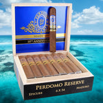 ミディアムからフルボディの葉巻。自然な甘みと、エスプレッソとダークココアの風味が絶妙なフィニッシュを特徴としています。食欲をそそるニカラグア産マデューロラッパーは、ニカラグア産キューバシードのバインダーとフィラーを包み込んでいます。ラッパーは6年間熟成され、さらに14ヶ月間バーボン樽で熟成された後、6年間熟成されたバインダーとフィラーが組み合わされています。これらの丁寧に熟成された葉巻は、風味豊かで忘れられない贅沢な喫煙体験を生み出します。ニカラグアでハンドメイドされたペルドモ・リザーブ10周年記念マデューロは、ペルドモ・シガーが高級葉巻を作り始めて10周年を記念して作られました。