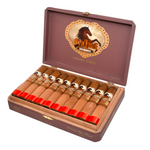 アラザン・コロホ・ロブストは、特別な機会にぴったりのミディアム・ストレングス・シガーです。アラザン・コロホは、天然のコロホ・ラッパーと、ブラジル、ニカラグア、ペルー産のタバコ葉を特別にブレンドした葉巻を使用しています。ナッツのようなクリーミーな風味、甘さと塩味、そして力強く複雑な風味を持つ、芳醇なコーヒーの香りが広がります。アラザン・コロホ・ロブストは、完璧な構造と優れた燃焼性を備え、箱詰めに値する逸品です。