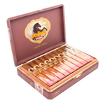 アラザン・コロホ・トロは、特別な機会に最適なミディアム・ストレングス・シガーです。アラザン・コロホは、天然のコロホ・ラッパーと、ブラジル、ニカラグア、ペルー産のタバコ葉を特別にブレンドした葉巻を使用しています。ナッツのようなクリーミーな風味、甘さと塩味、そして力強く複雑な風味を持つ、芳醇なコーヒーの香りが広がります。完璧な構造と優れた燃焼感は、箱詰めに値する逸品です。