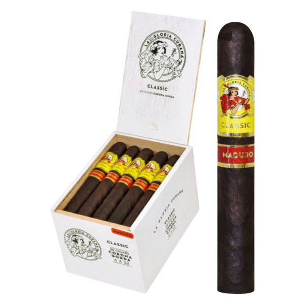 ラ・グロリア・クバーナ・マデューロ・コロナ・ゴルダは、ドミニカ共和国で手作りされた、フルボディでミディアム・ストレングスのシガーです。風味豊かでオイリーなエクアドル産マデューロ・ラッパーを、ニカラグア産のバインダーと、ドミニカ共和国とニカラグア産のタバコをブレンドしたフィラーに巧みに重ねています。この素晴らしいブレンドは、チョコレートとレザーの風味に、甘いウッディな余韻が加わります。